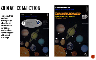 and I thought of a photoshoot board. The microsite I based upon their zodiac pendant collection from their products.